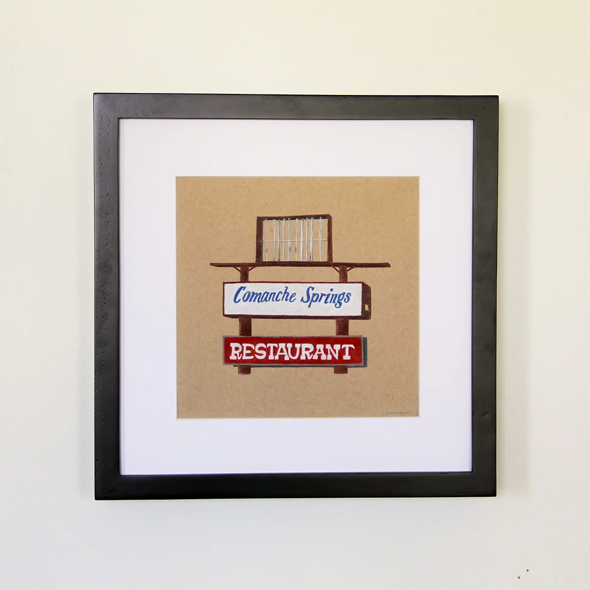 Comanche Springs Restaurant Sign by Jessica Fontenot - Framed Original Drawing