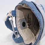 Two exterior pockets, interior fully lined with suede accent snap closure