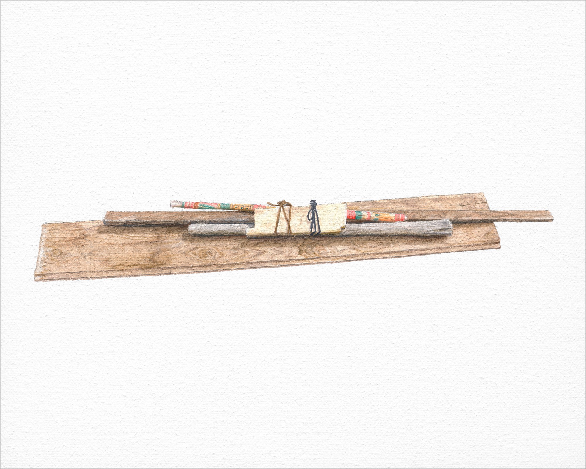 For the past decade, Jason has made paintings of Austin’s residential bulk trash as part of an ongoing series titled ‘Discard Piles’. A few hours each week he drives the city’s neighborhood streets searching for the crème de la crème of trash piles. They are documented photographically, exactly as found without alteration to their arrangement. Back in his studio, select piles are intricately painted using water-thinned acrylics against empty white backgrounds. Collectively and individually, these paintings hold open space for contemplating the unknown stories of other people’s lives; the power and seeming necessity of purging; the environmental impact of disposable culture; and the uncanny beauty of dereliction.