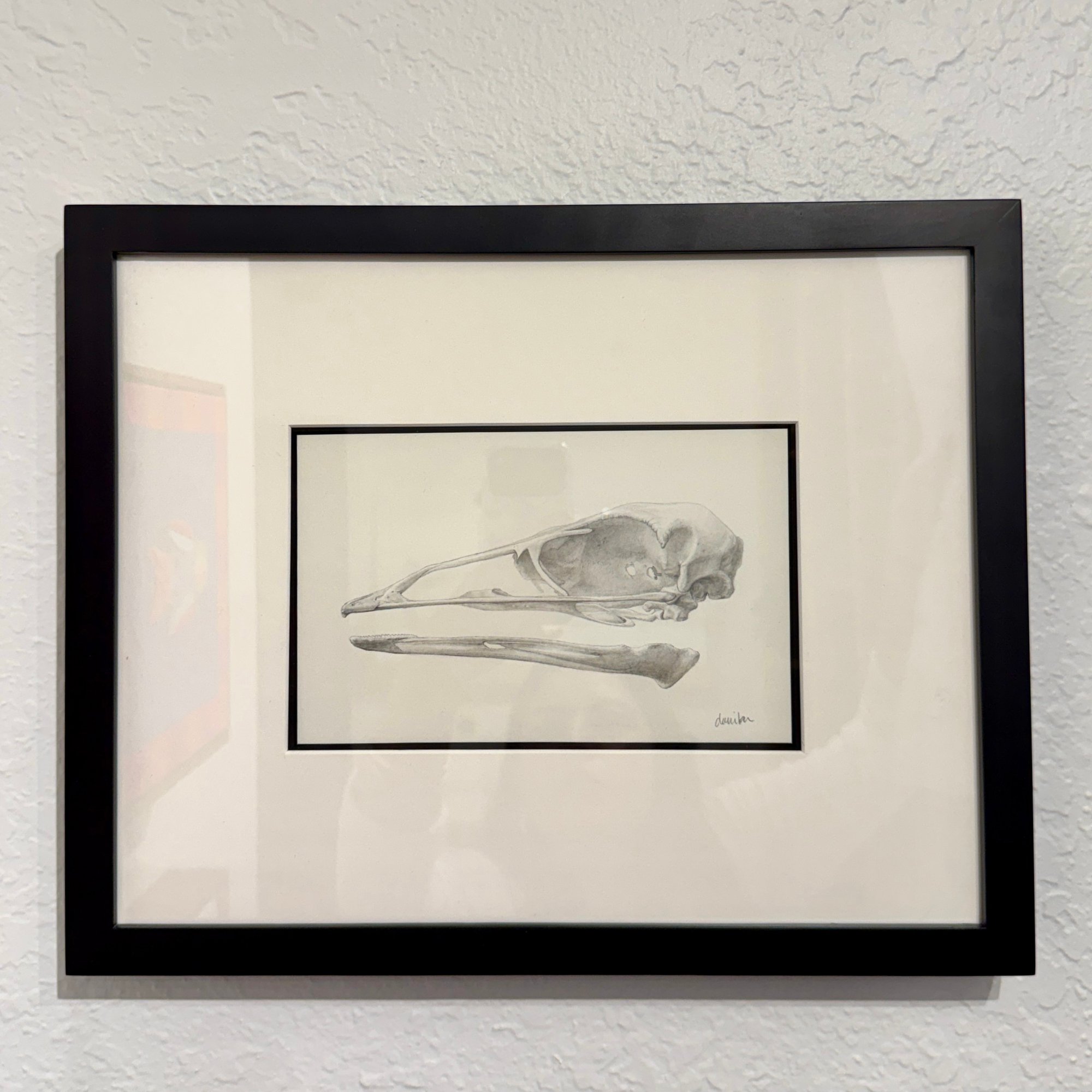 Emu Skull (lateral) by Danika Ostrowski - Framed Original Drawing