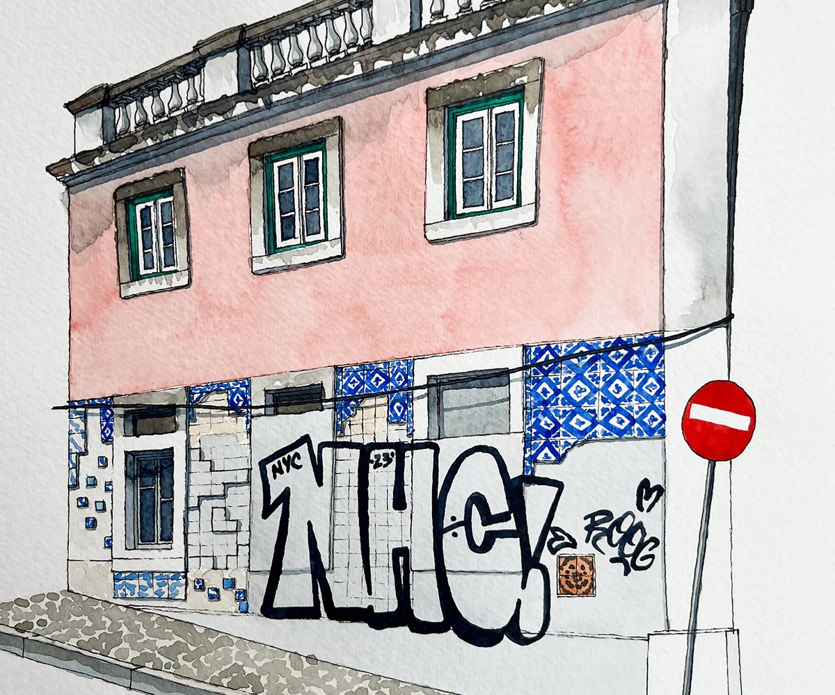 Lisbon Pink Corner by Jessica Fontenot - Framed Original Artwork