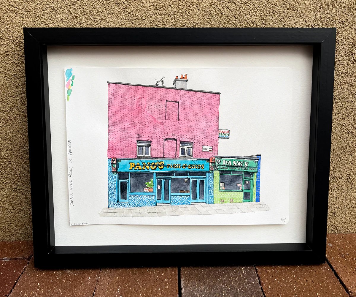 Pang's Fish & Chips London by Jessica Fontenot - Framed Original Artwork
