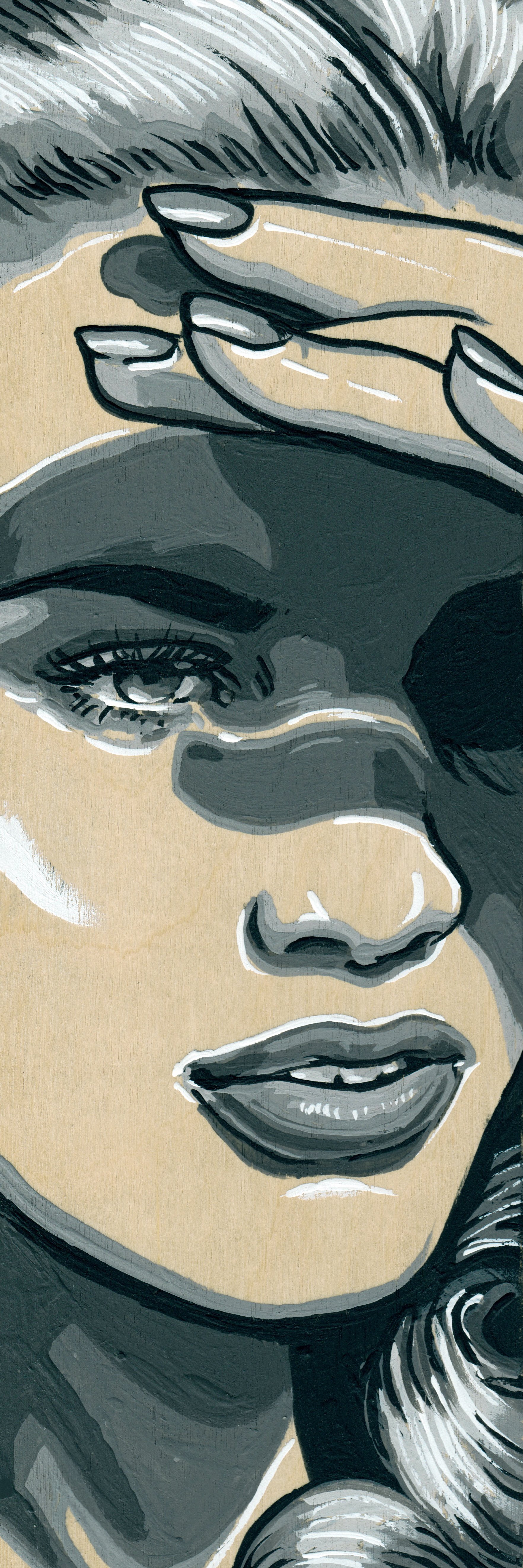 As a painter and illustrator, Ella Nilsson explores thenuances of the human face, using mostly grayscale to define forms and expressions. Contrast has been a reoccurring theme in her work, rooted back to the contrasting landscapes & different cultures in her upbringing. Her work leverages into the interplay of light and shadow to uncover the hidden aspects to her viewers. Working primarily on wood panels, Ella integrates