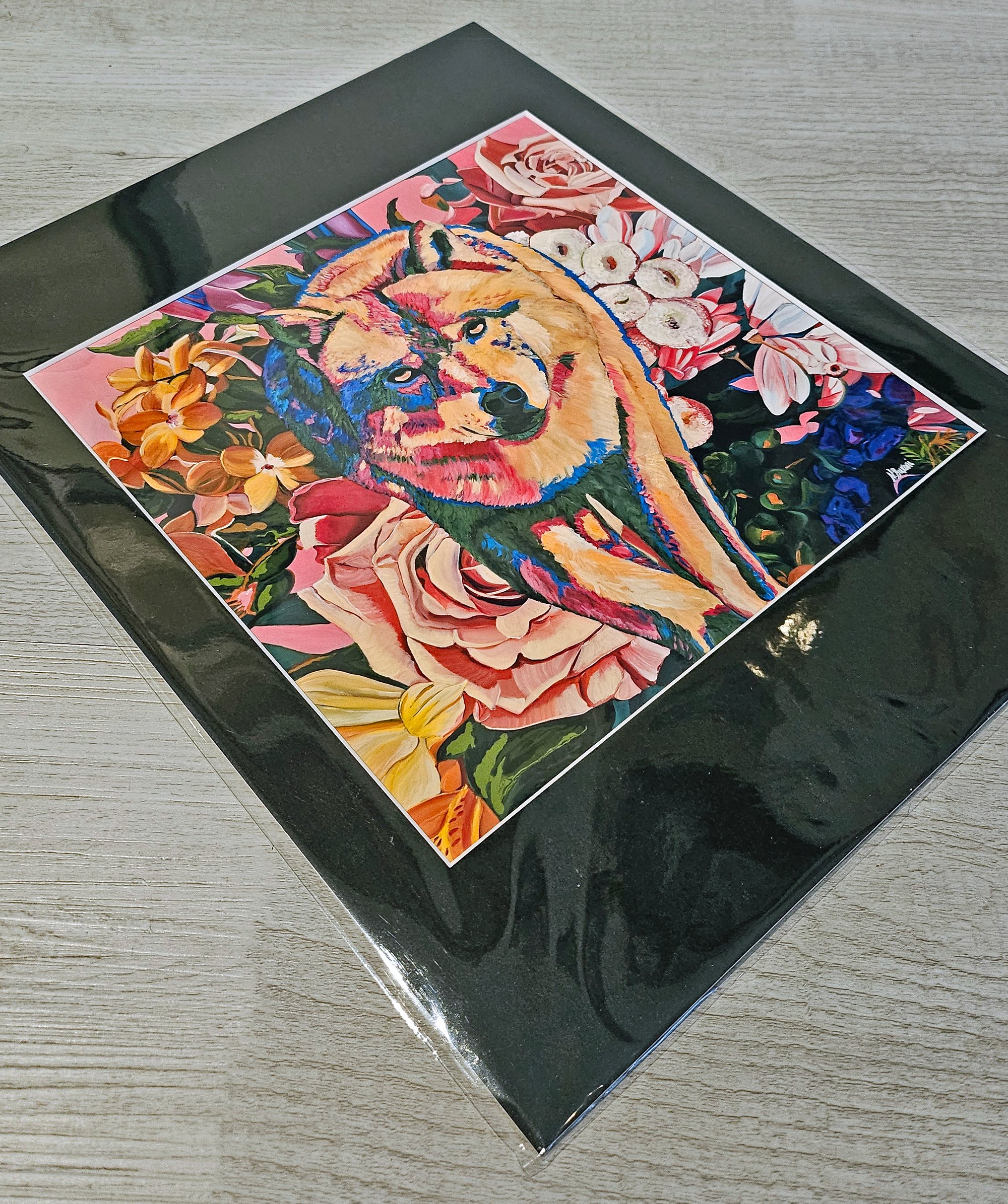 overall size: 11" x 14" with included black mat with white reveal